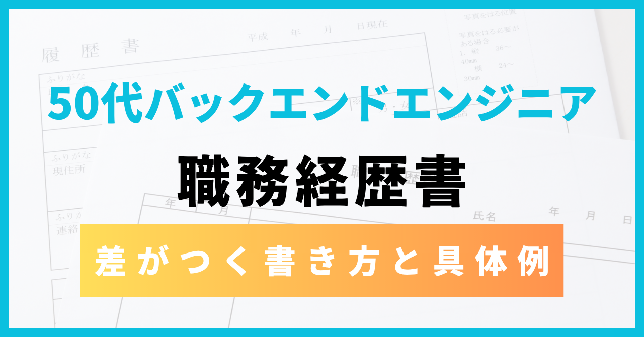 「API 開発・DB 設計で実務経験を積んできたのに、職務経歴書に何を書けばいいかわからない」「使用技術は書いているけど、それだけで通る気がしない」20代バックエンドエンジニアの転職活動でよく聞く悩みです。